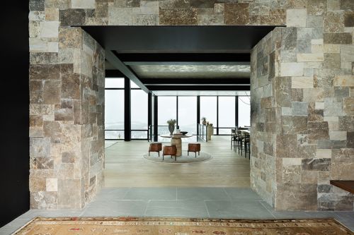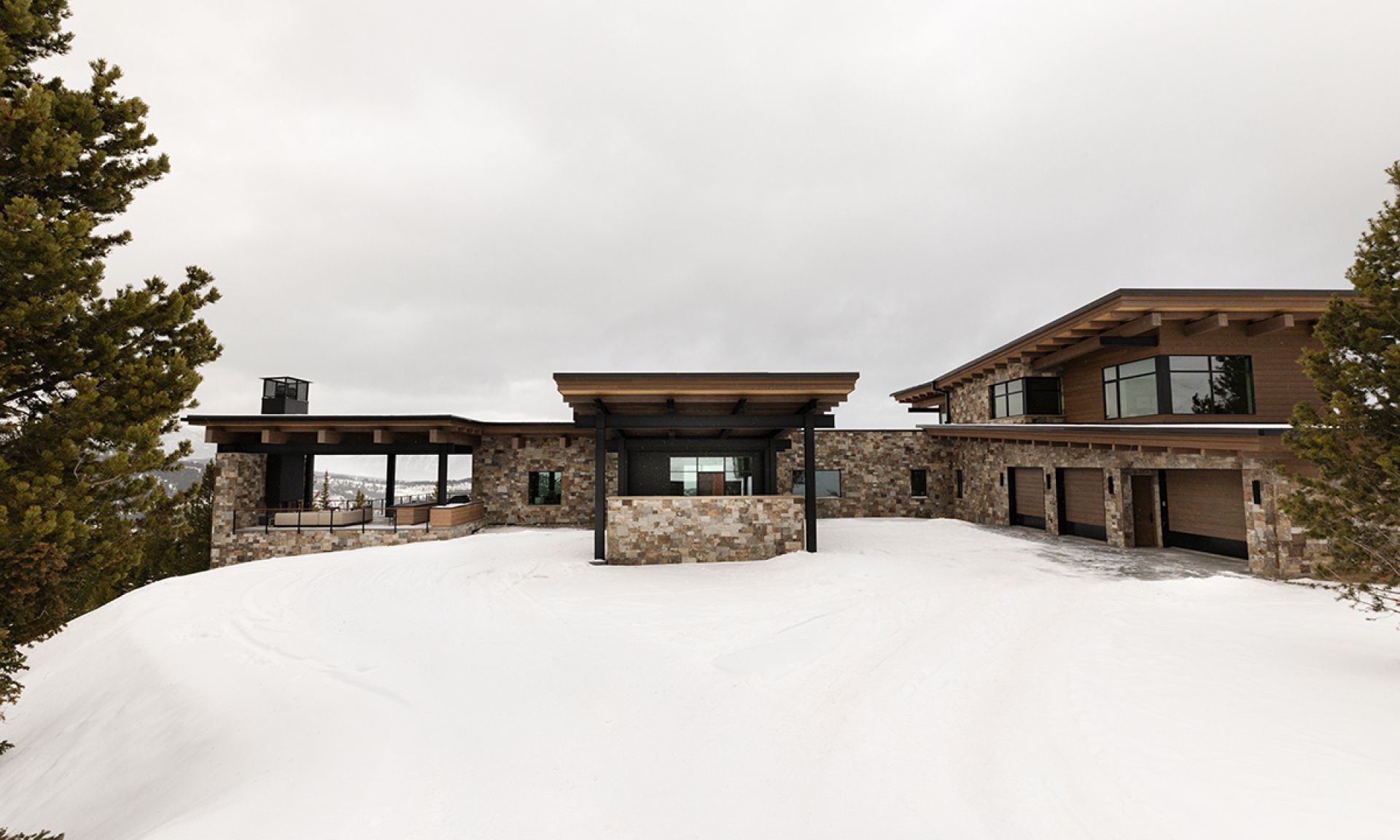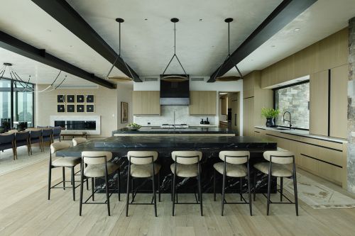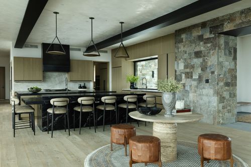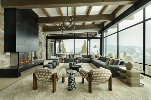 Spanning 12,469 square feet, the home blends refined mountain architecture with modern design, featuring natural stone, warm wood finishes, and expansive windows that flood the interiors with light while framing the surrounding landscape. Open-concept living areas are designed for both entertaining and everyday comfort, with seamless indoor-outdoor flow and multiple gathering spaces throughout.
